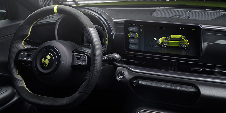 Merging Abarth's DNA with the expertise and palmares of Stellantis Motorsport, we have tested and developed the electric motor using the result’s obtained by checking it on a real Formula E bench tests. Then we have increased suspension stiffness, adopted hydraulic bump-stop shock absorber, and reinforced the chassis with a rear anti-roll bar that changed the balance by enhancing the overall rear anti-roll stiffness. But we didn’t settle: that’s why we selected five outstanding racing experts to bring the thrills of the track into everyday driving.